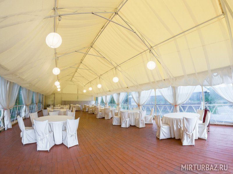 Залы доступны для Вас круглый год.Шатер, который вмещает в себя до 70 гостей. В нем Вы можете отпраздновать в теплое время суток абсолютно любой праздник. Планируете свадьбу? Тогда это идеальное место для Вас — красная ковровая дорожка, уникальный декор и белоснежный шатер!