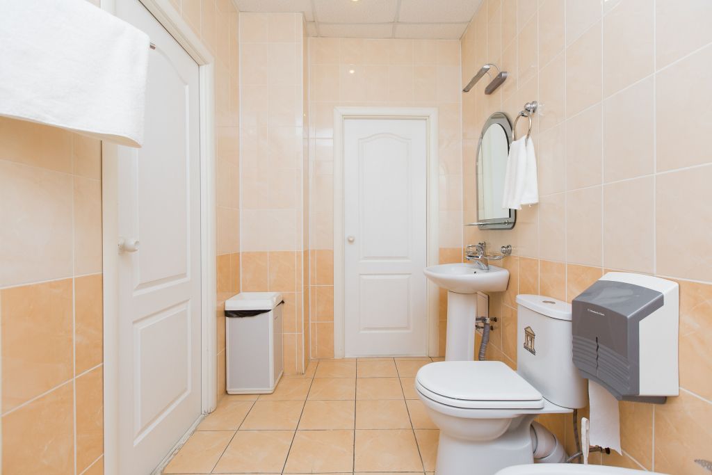Двухкомнатный номер, рассчитанный на проживание до четырех человек одновременно, состоит из: коридора, одного общего туалета, одной общей ванной комнаты, двух комнат.