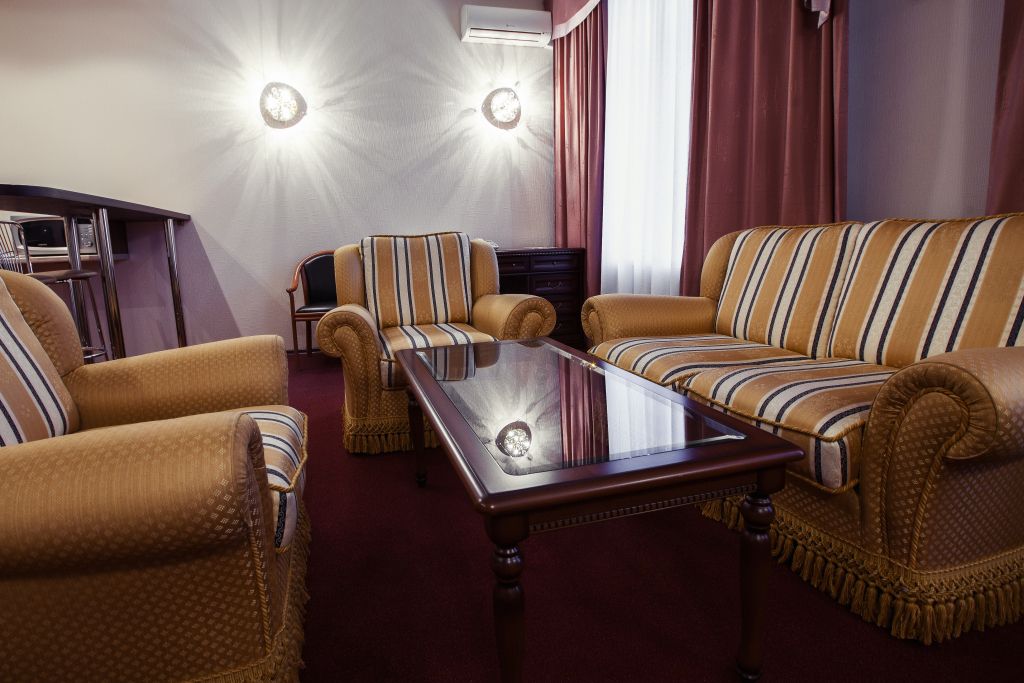 Двухкомнатный номер, рассчитанный для проживания одного и/или двух человек, состоит из: гостиной, спальни и совмещенного санузла.