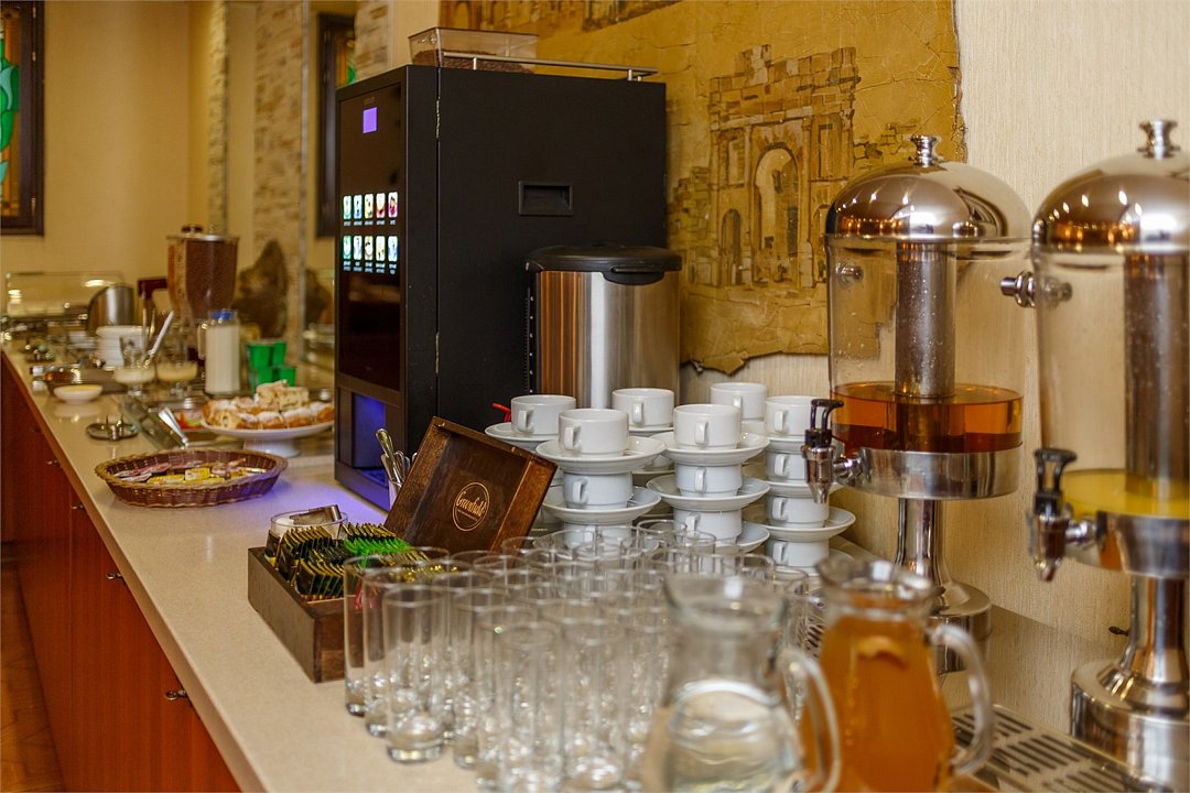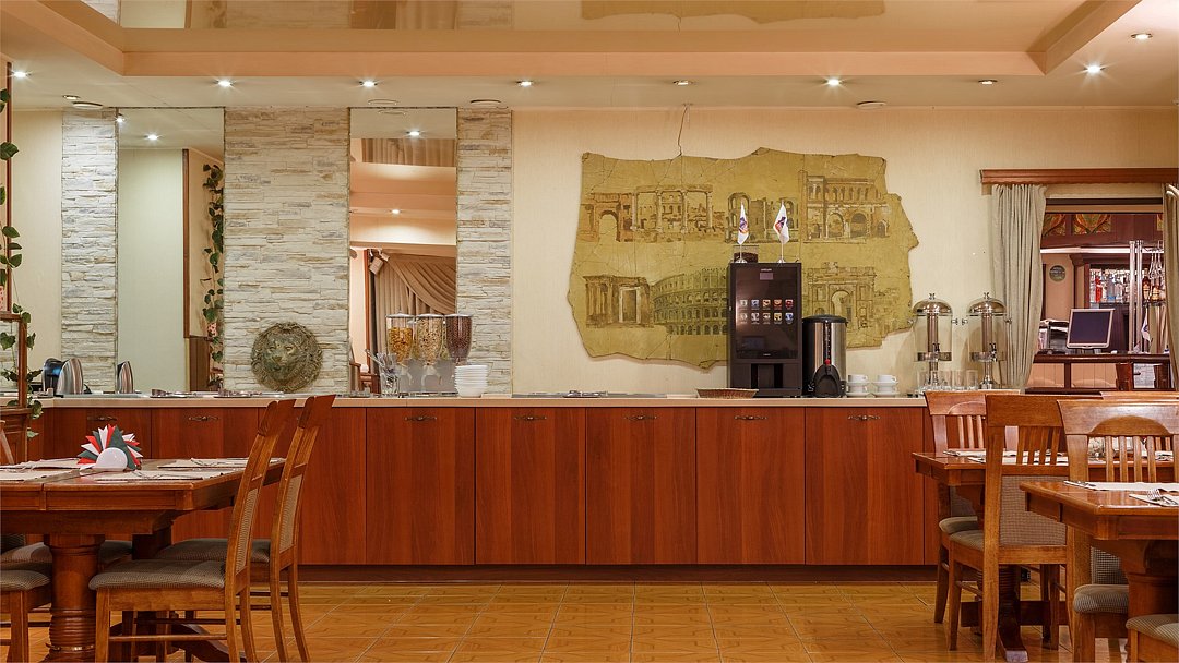 Каждое утро в итальянском ресторане «IL Gusto» на цокольном этаже подается завтрак «шведский стол». Зал питания на 60 посадочных мести идеально подойдет для проведения банкетных мероприятий. Для более уединенных торжеств предусмотрен камерный VIP-зал на 20 мест.