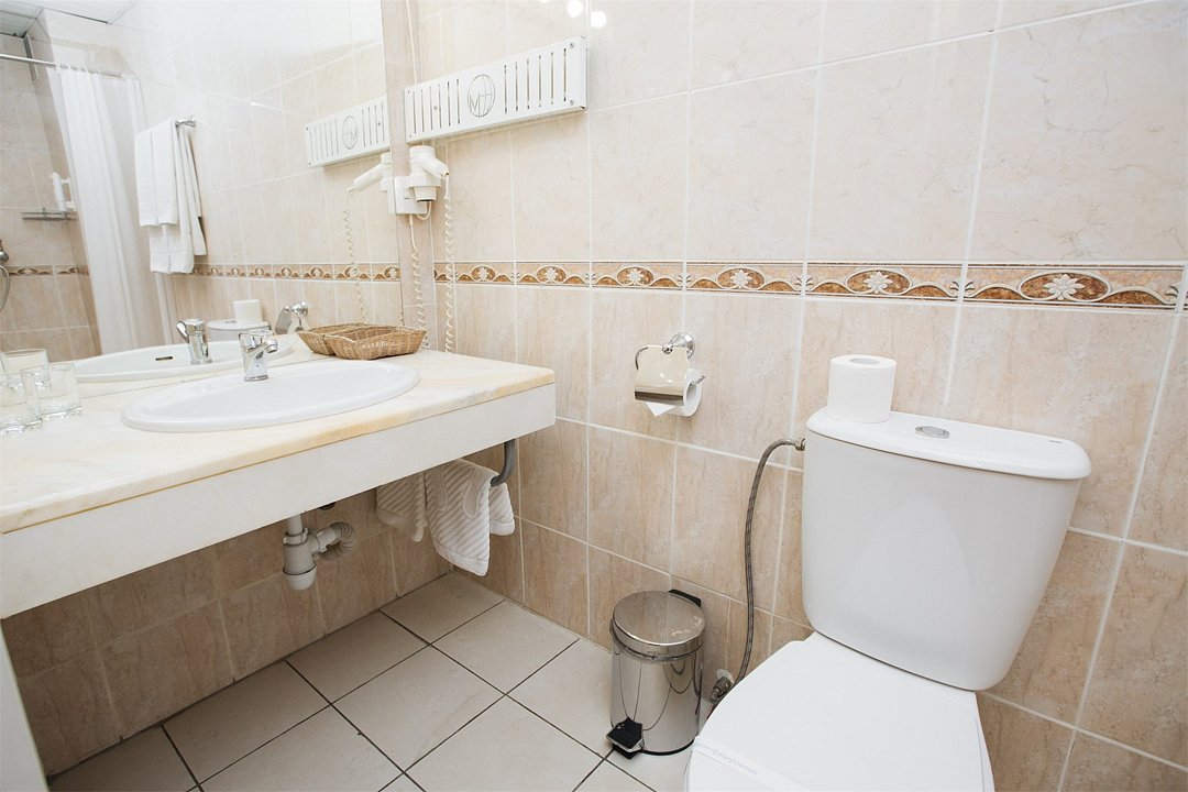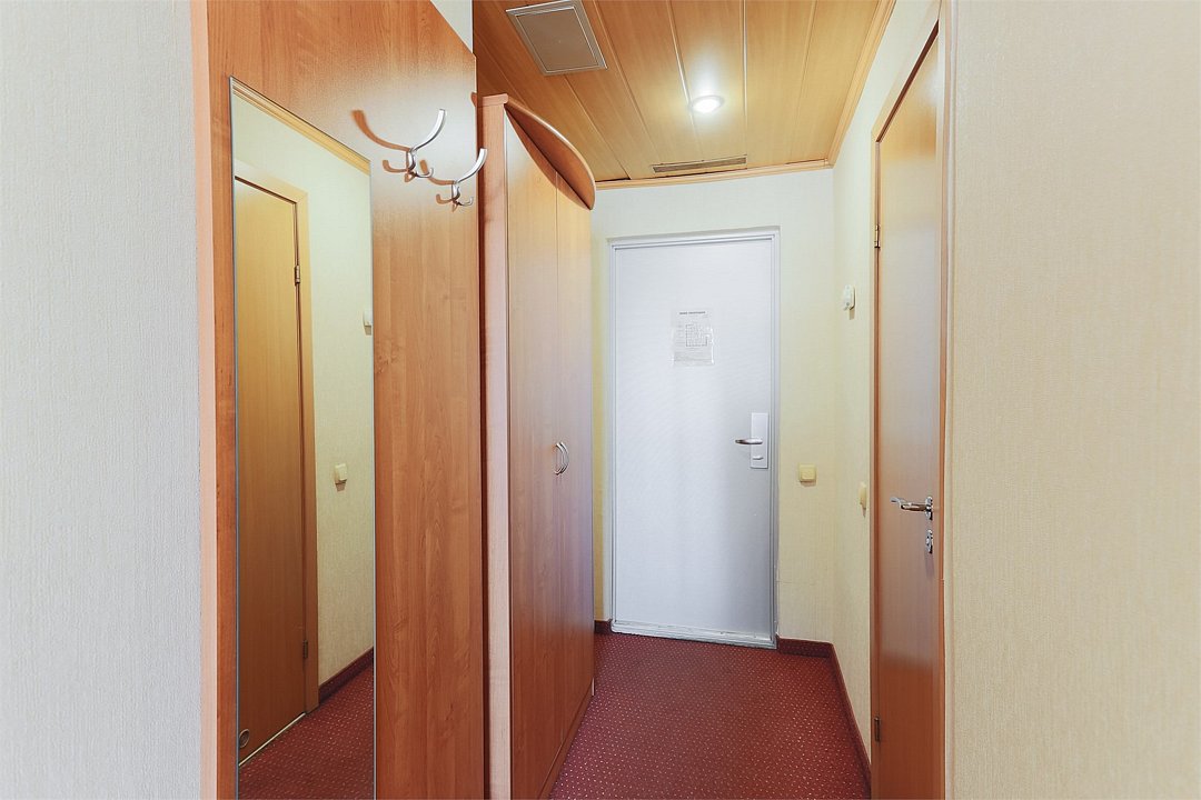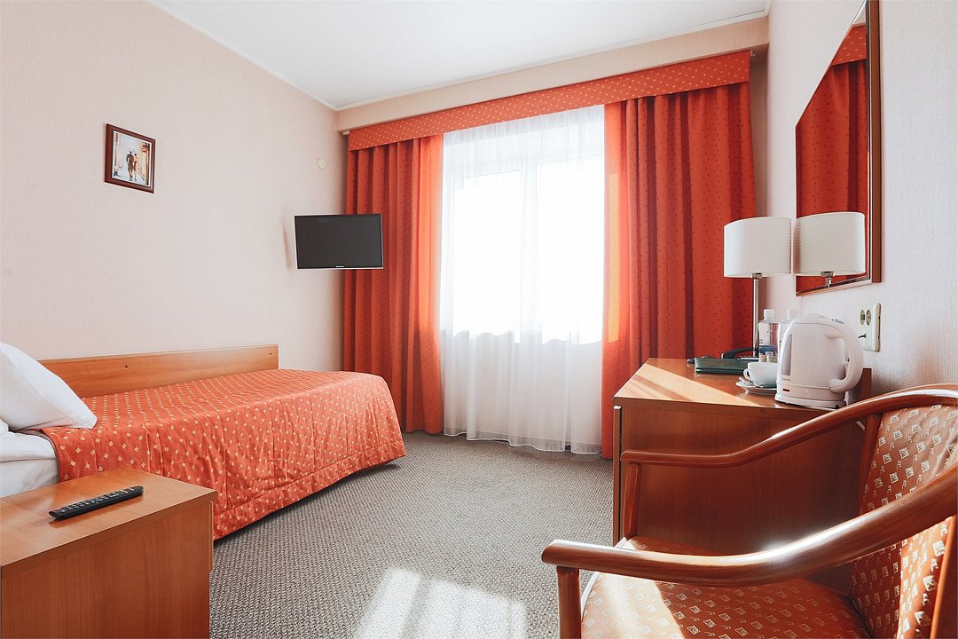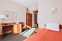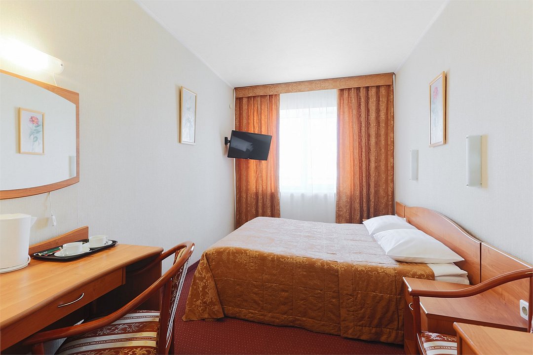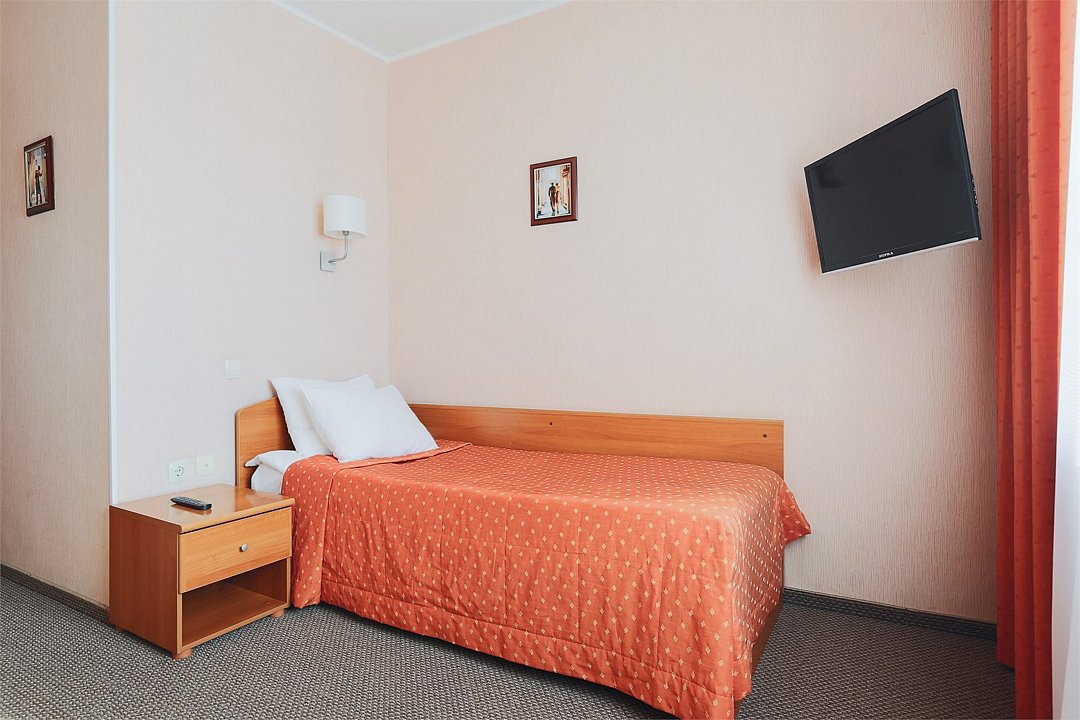 Небольшая уютная комната. Душ, санузел. Спутниковое/цифровое эфирное телевидение, мини-бар, общая система кондиционирования воздуха. Прямая междугородная и международная телефонная связь, доступ к Интернет. Фен, тапочки, набор парфюмерии, халат. Для всех проживающих бесплатно предлагается: завтрак «шведский стол» в ресторане IL Gusto, неограниченный доступ к WiFi Интернет, 1 бутылка минеральной воды при заезде, пользование сейфом на стойке регистрации, свежая пресса, услуги камеры хранения.Услуги и удобства