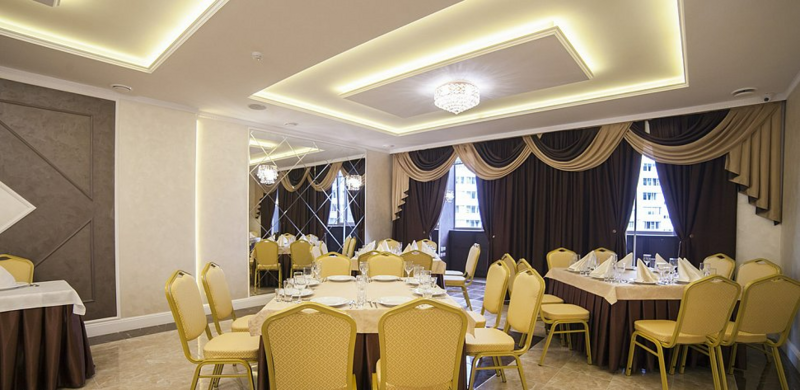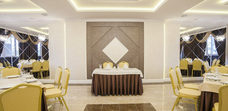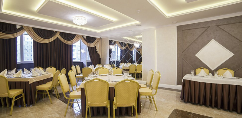 Банкетный зал подходит для организации свадьбы, корпоратива, юбилея или другого важного мероприятия.
