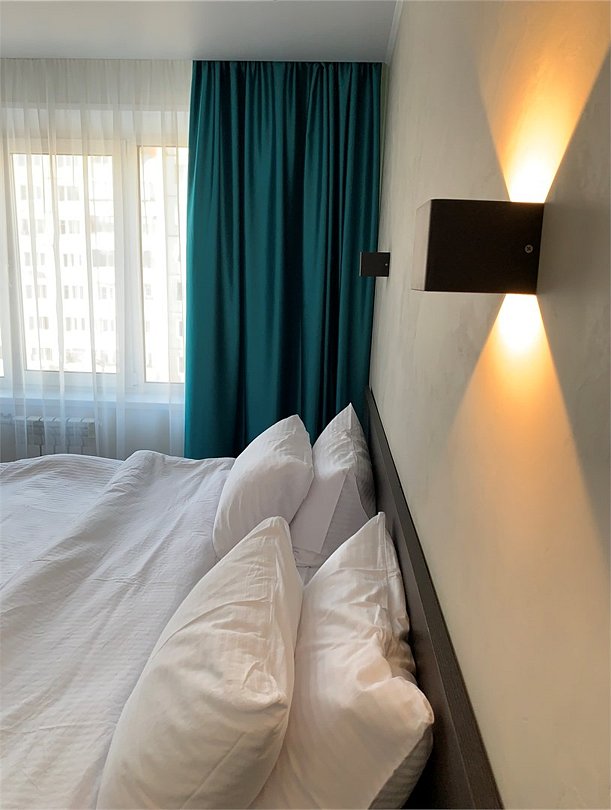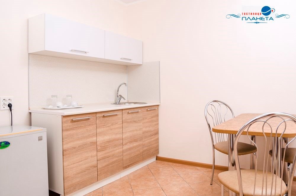 Двухкомнатный номер с кухней I-ой категории общей площадью 43 м2. В спальне две односпальные кровати 90*200 и рабочая зона, в гостиной зона отдыха, мягкая мебель, шкаф, кондиционер, телевизор. На кухне есть все необходимое для комфортного проживания: холодильник, электрический чайник, чайные приборы, посуда, микроволновая печь, обеденная зона. Ванна с душем, набор полотенец, мыло, шампунь, фен. *Халаты, тапочки, зубные и бритвенные наборы предоставляются по просьбе.Услуги и удобства
