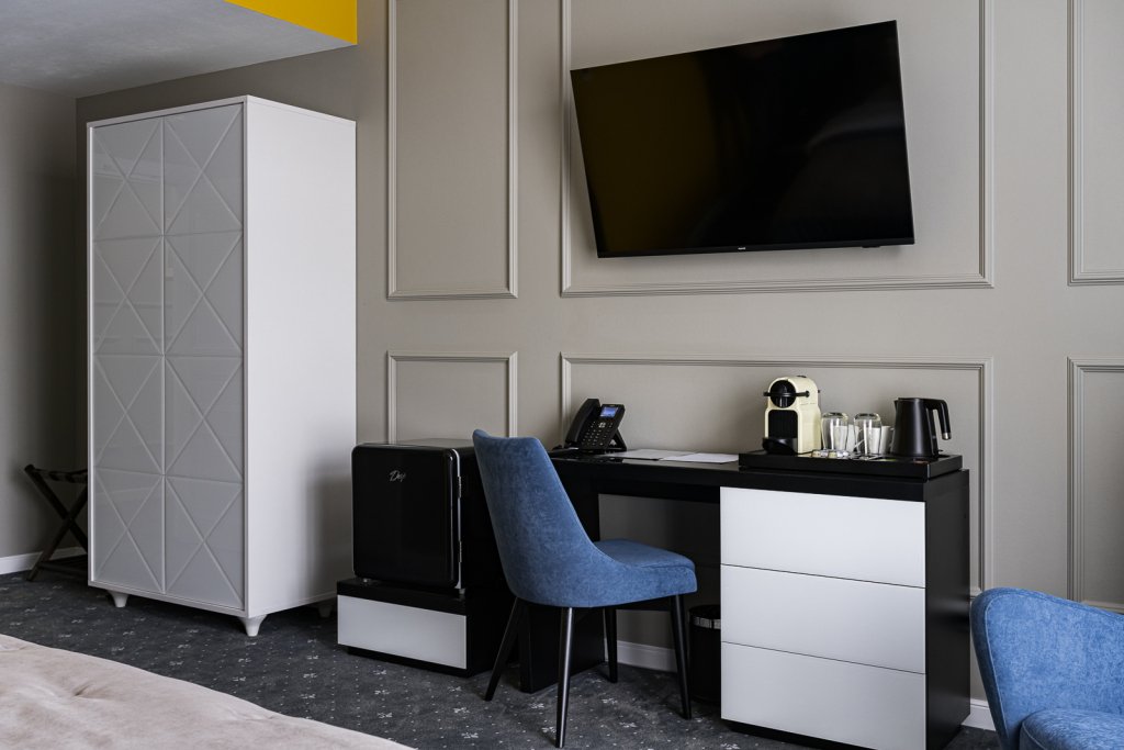 В номере гостей будут ждать телевизор, мини-бар и халат. Перечисленные услуги есть не во всех номерах.