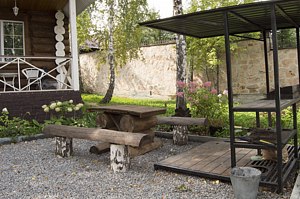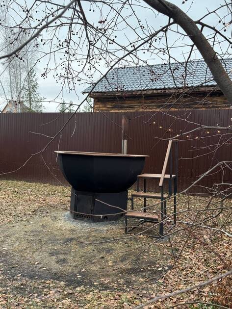 На территории есть мангал, шампура и казан для приготовления блюд на свежем воздухе.