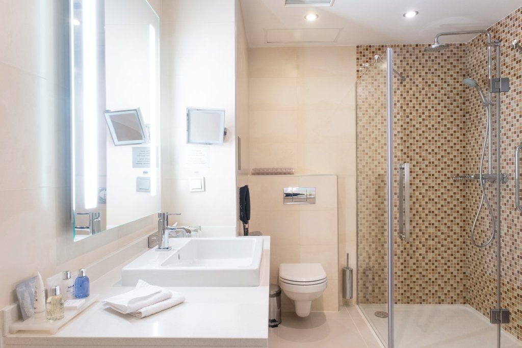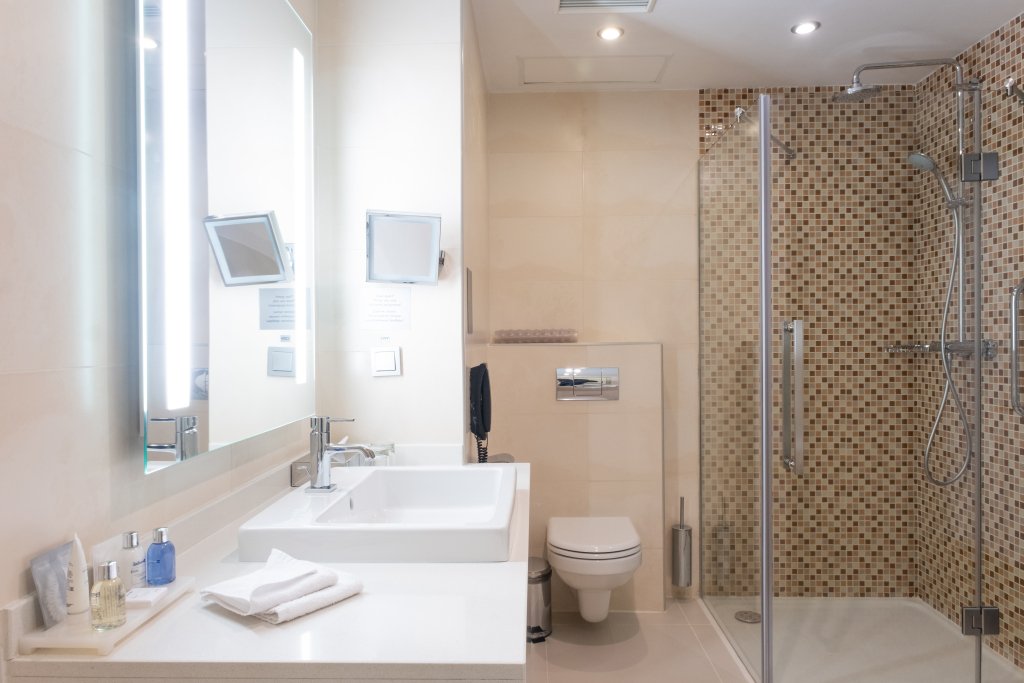 Каждый номер отеля оснащён самым необходимым для комфортного проживания: бесплатный Wi-Fi, пол с подогревом в ванной комнате, набор для приготовления чая и кофе, косметическое зеркало, гладильная доска и утюг, фен, система индивидуального климат-контроля, сейф и телевизор.