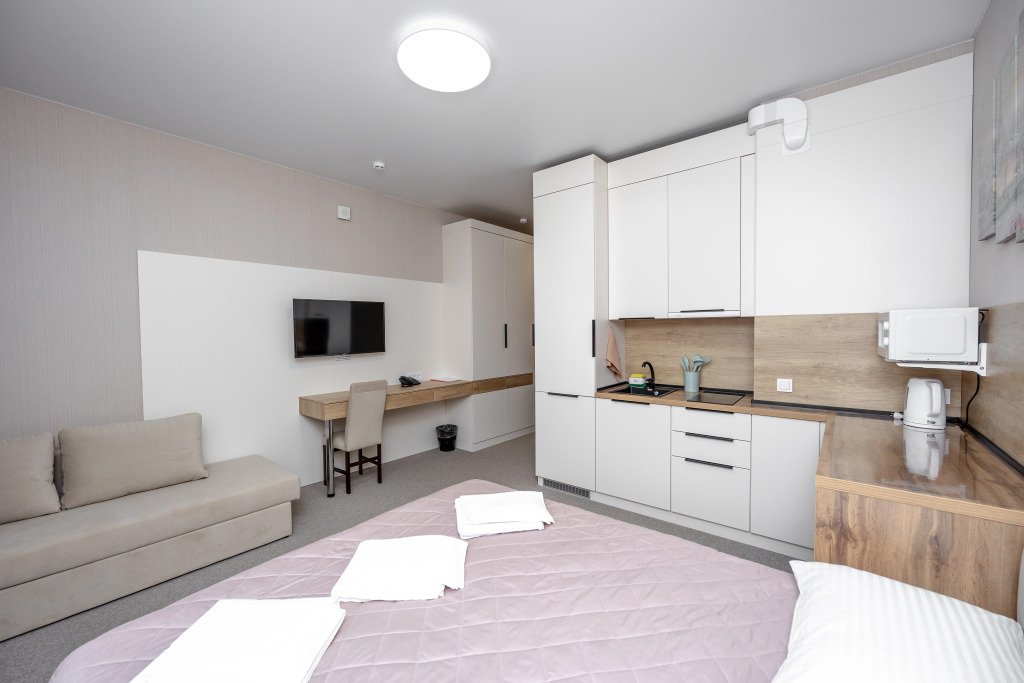 В номере вас будут ждать телевизор. Оснащение зависит от выбранной категории номера.
