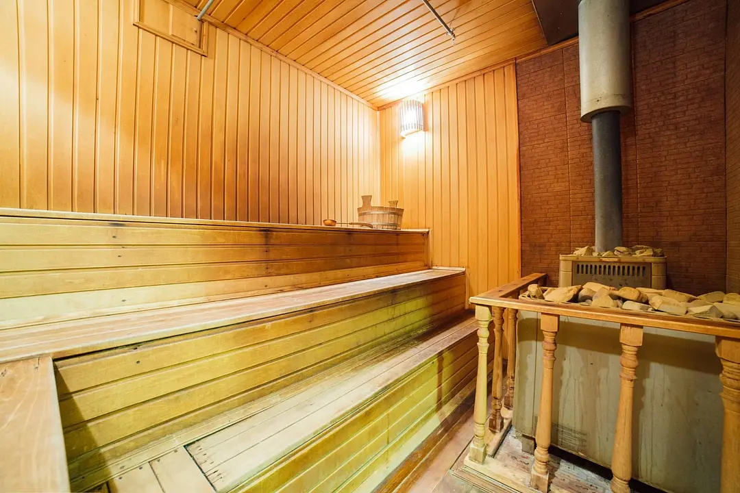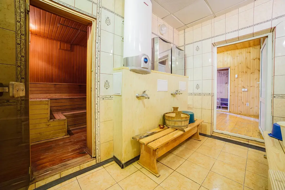 Финская сауна, бассейн с родниковой водой, душевые, комната отдыха с самоваром, фен, телевизор.
