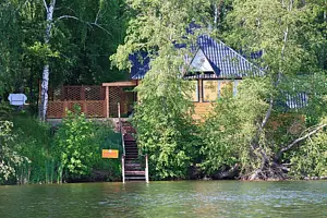 В бане расположены: парилка, комната отдыха с камином, самоваром, телевизором, холодильником, феном, душевая, теплая терраса с панорамным видом на озеро, туалетная комната