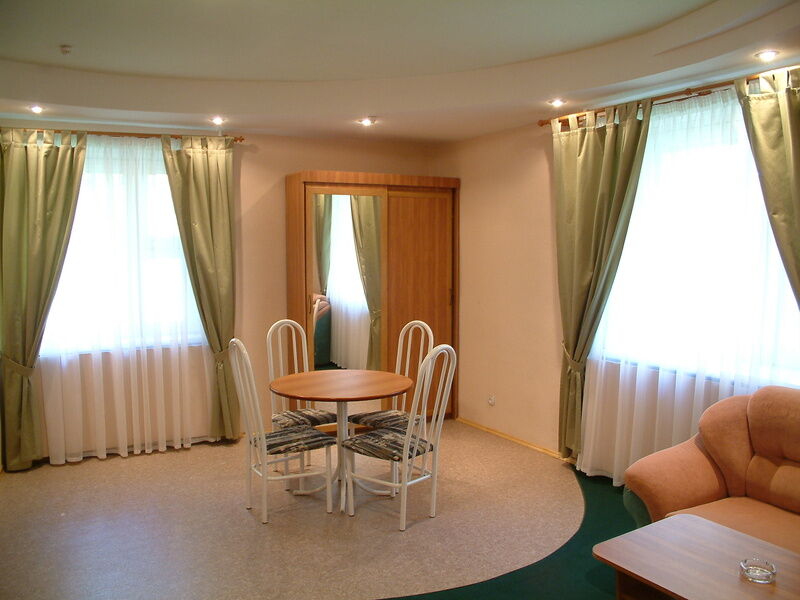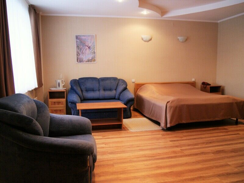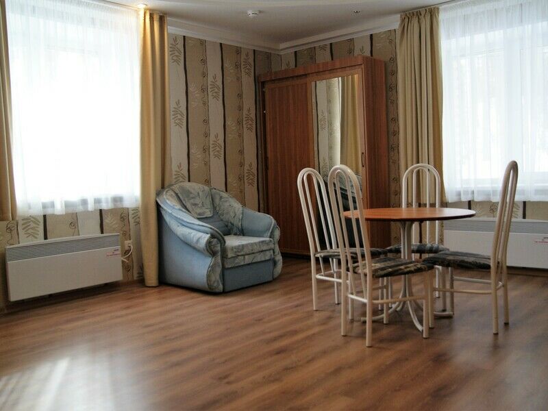 На благоустроенной территории загородного комплекса располагаются уютные деревянные одно- и двухэтажные коттеджи. В каждом два или четыре номера-апартамента с отдельным входом. В целом жилой фонд рассчитан на единовременное размещение 75 человек. Номера укомплектованы современной удобной мебелью, есть вся необходимая техника, мини-кухня и ванная комната с набором косметических принадлежностей для гостей.