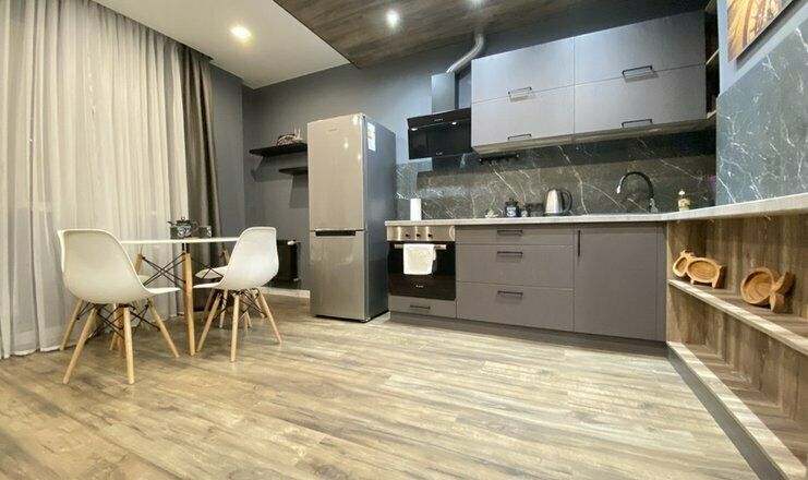Апартаменты с оборудованной кухней, лоджией, телевидением и интернетом.