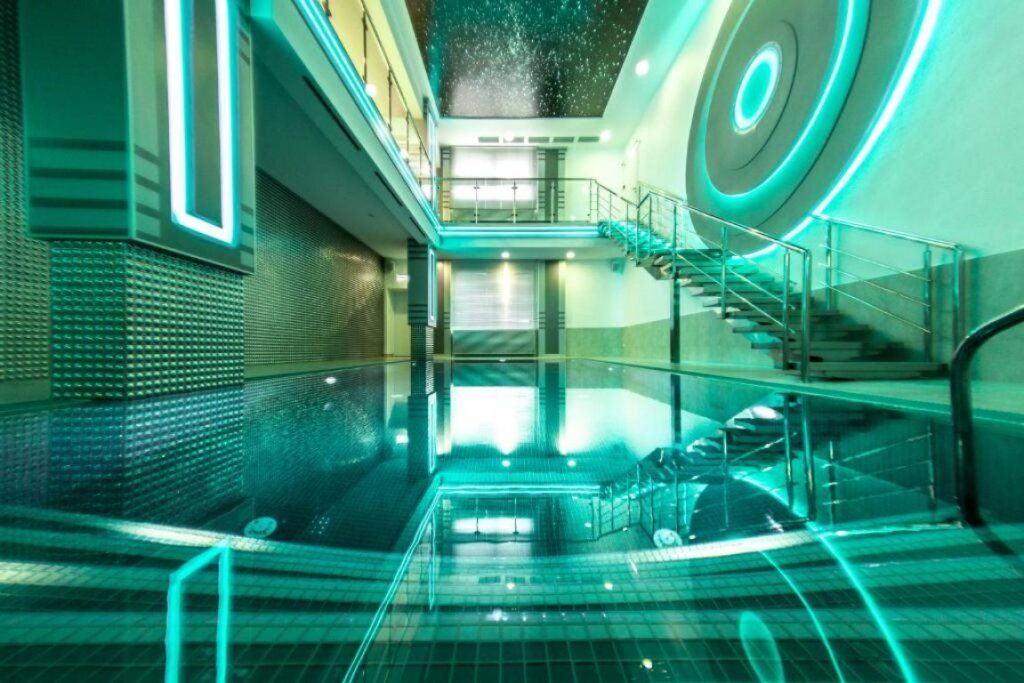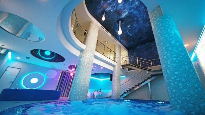 В залах «Сатурн», «Марс», «Вселенная», «Солнце», «Нептун», есть тёплые крытые бассейны.