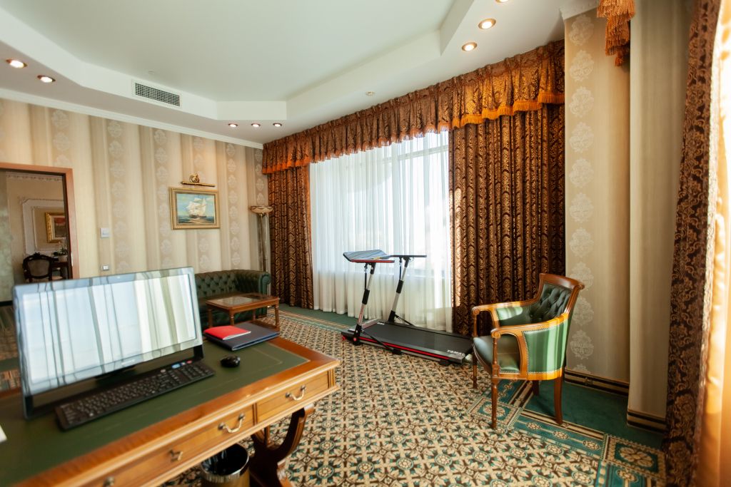 Шикарный двухкомнатный люкс с двуспальной кроватью kingsize. Панорамный вид с 19 этажа - самого высокого этажа отеля.