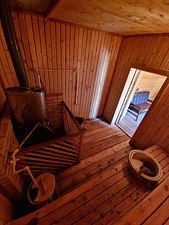 Инфраструктура: зона отдыха, шапочки, обливное ведроГости могут попариться в баньке, расположенной на территории базы.