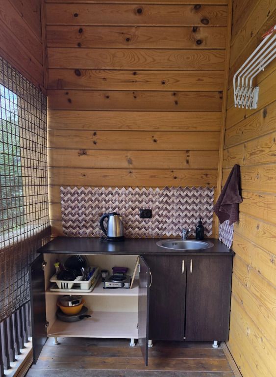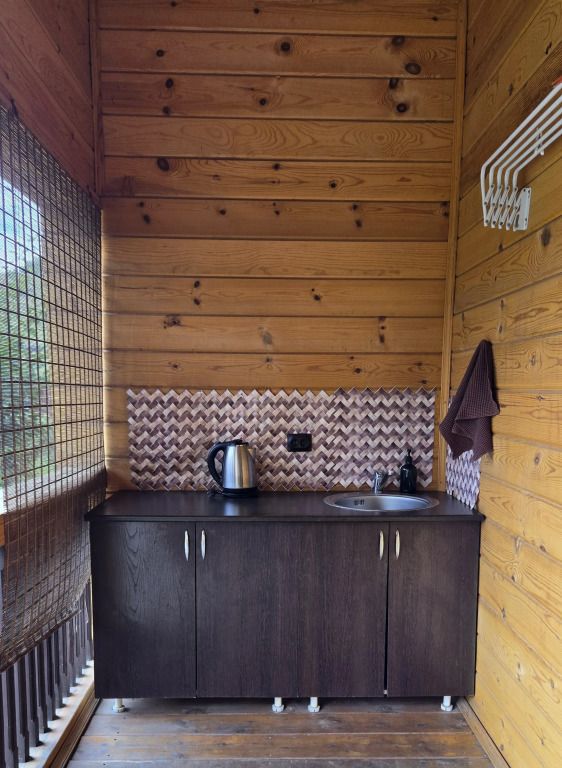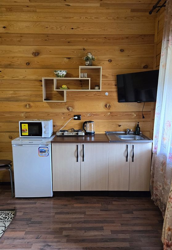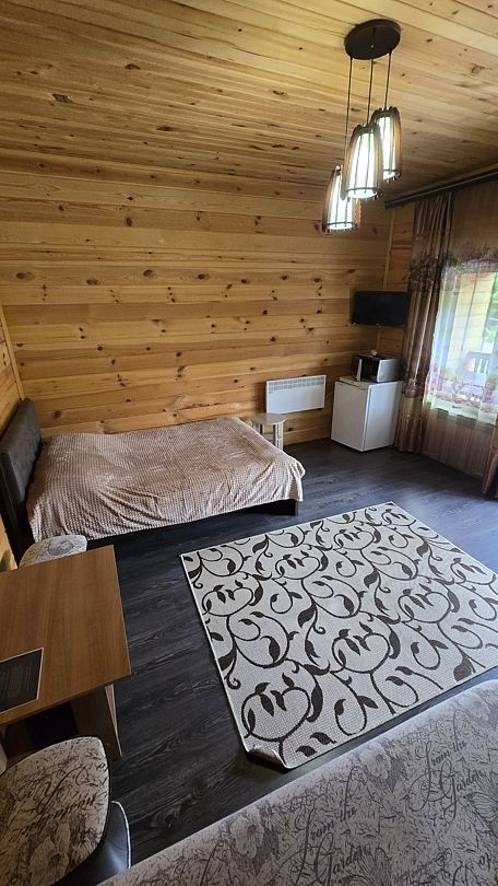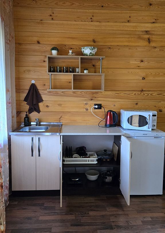 Уютный домик для отпуска, оснащённый всем необходимым для комфортного проживания. Всего на территории базы отдыха 4 таких домика.