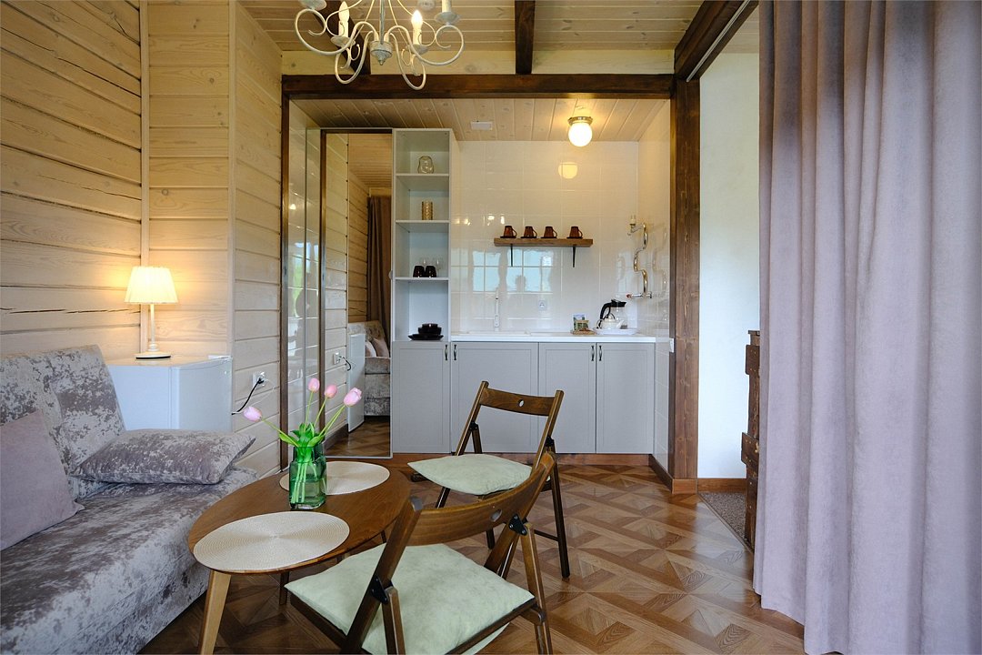 Шале - студия одноэтажное с двуспальной кроватью и диваном