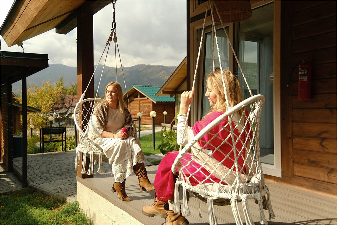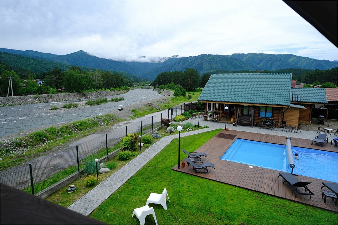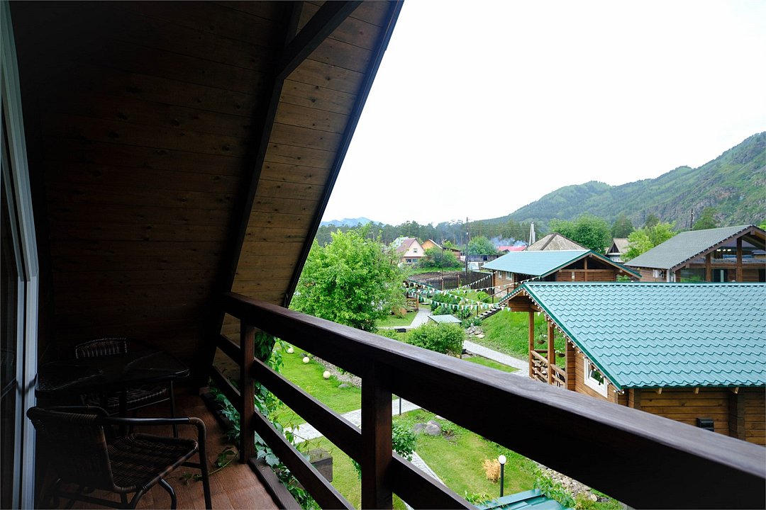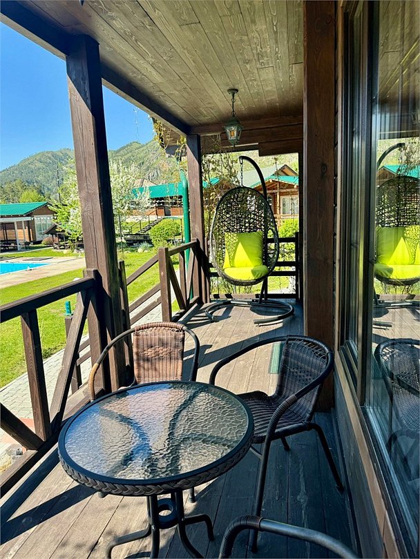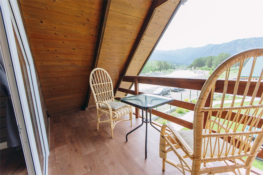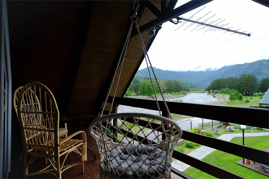 ✔ Просторный двухкомнатный номер на втором этаже основного гостевого дома с панорамными видами на реку и горы ✔ Кухонная зона: стол, 4 стула, холодильник, чайник, набор посуды ✔ Ванная комната оснащена всем необходимым (душ, гигиенический душ, набор полотенец, фен, халаты, туалетные принадлежности и косметика) ✔ Большой балкон с мебелью для отдыха и качелей ✔ Теплый пол, кондиционерУслуги и удобства
