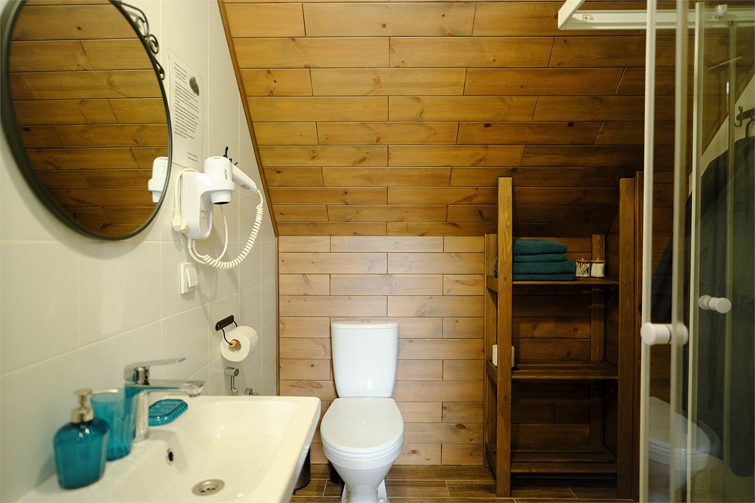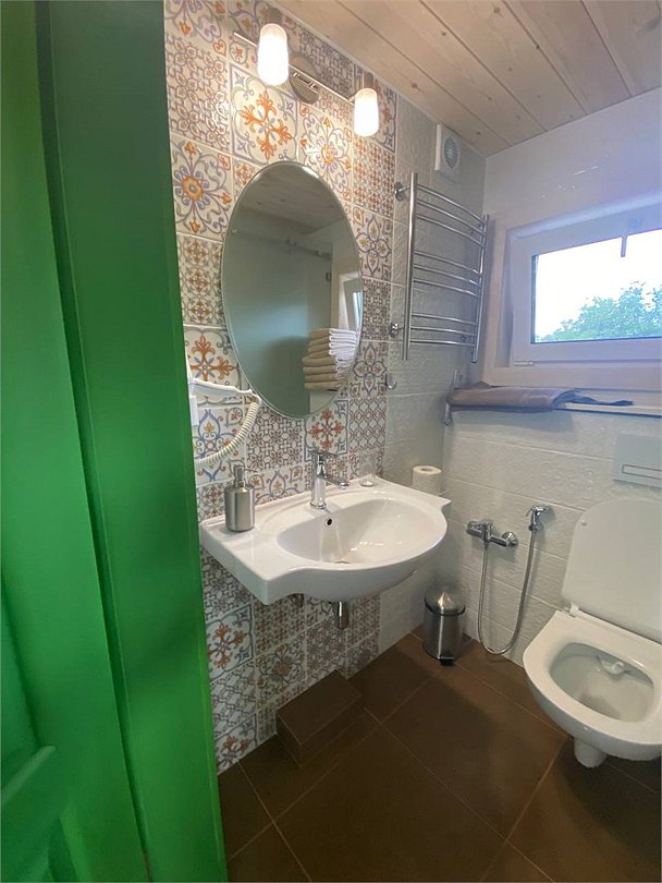 ✔ Отдельный просторный дом с 4 спальнями, большой гостиной и кухонной зоной, оснащенной всем необходимым: кухонный гарнитур (варочная панель, вытяжка, духовой шкаф, чайник, микроволновая печь, посуда), вместительный холодильник, обеденная зона на 10 гостей ✔ Размещение на 4 двухместных кроватях с возможностью разделения на одноместные (система боксспринг), 2 раскладных кресла в спальнях, раскладной диван в зале ✔ Две ванные комнаты на этажах (душ, санузел с гигиеническим душем, фен, халаты, косметика, необходимые принадлежности) ✔ Панорамные виды на реку, горы, бассейн ✔ Теплый пол, кондиционер ✔ Терраса с качелями, беседка с мебелью для отдыха, мангалом ✔ Парковочное место у домаУслуги и удобства