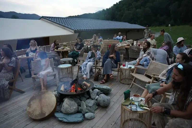 Семейный отдыхДостоинстваОчень крутой глэмпинг, все продумано до мелочей, даже сейф есть в тенте) Природа потрясающая, аж дух захватывало от красоты вокруг! Ребенку очень понравилось в «детском саду». С детьми занимаются, увлекают развивашками, занятиями разными. Персонал просто супер. На территории есть уютный ресторанчик, а кухняяя...все было просто бомбически вкусно)) Рекомендую!