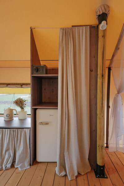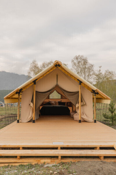 Глэмп-стандарт— это красивые уединенные шатры, рассчитанные на размещение до двух человек, где предусмотрены все условия для комфортного проживания в любую погоду.