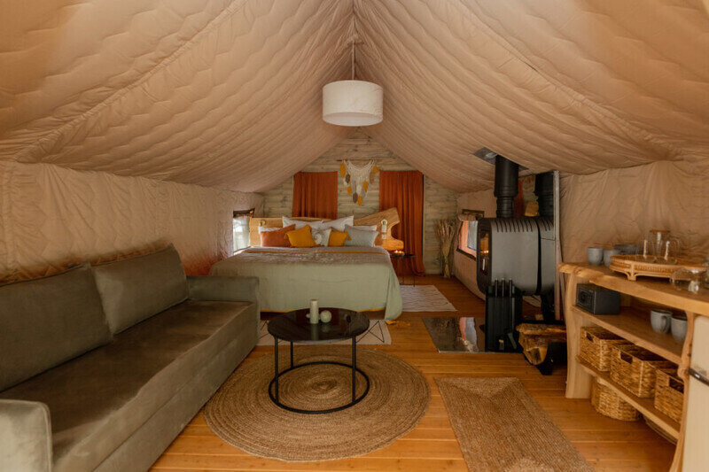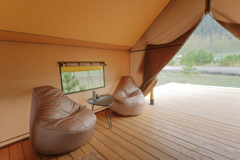 - личная зона внутри глэмпинга (диван, журнальный столик);