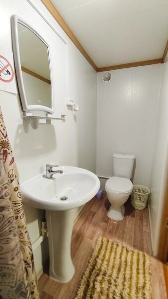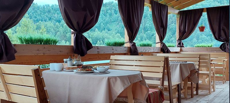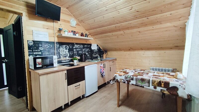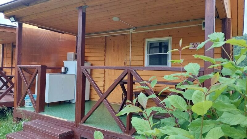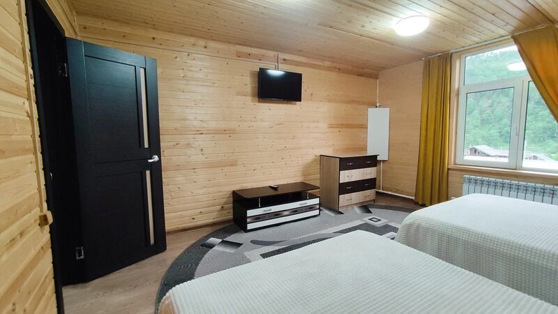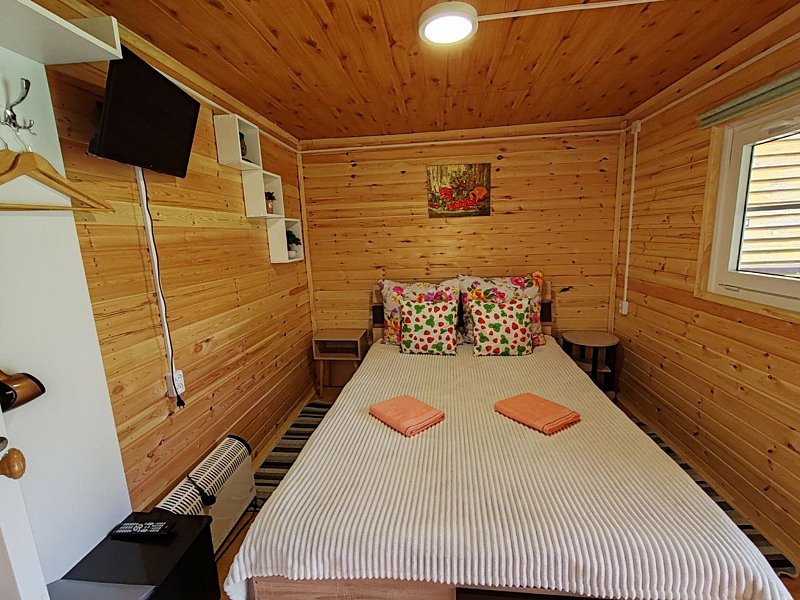 Небольшая терраса с мебелью и видом на горы. Двухспальная кровать (постельное белье + полотенце), WI-FI, прикроватная тумбочка, гардероб для одежды, телевизор, кухонный гарнитур, холодильник, СВЧ, мультиварка, эл.чайник, посуда, обогреватель в прохладные дни. Дополнительное место: раскладной мягкий диван (комплект постельного белья + полотенце). Санузел: холодная, горячая вода, раковина, унитаз, душ, зеркало, фен, жидкое мыло, шампунь, гель для душа.