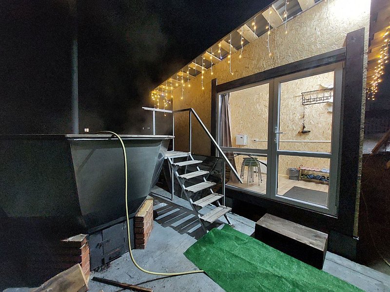 Читать полностьюБанный чан — это чан для парения на свежем воздухе. В этом и заключается основное отличие от традиционной бани: в процессе парения дышится свежим воздухом, а голова не нагревается. Жар распределяется снизу вверх, и именно такое парение считается полезным и правильным. Печь расположена под чаном. Банный чан с комфортом вмещает до 6 человек одновременно. Для придания аромата в процессе растопки в чан погружаются алтайские травы.