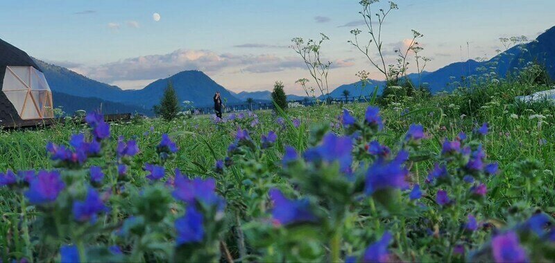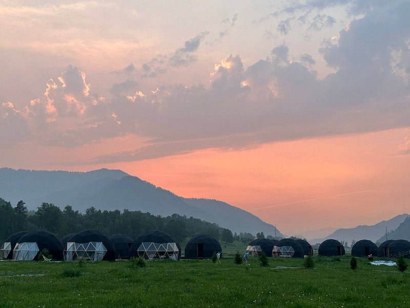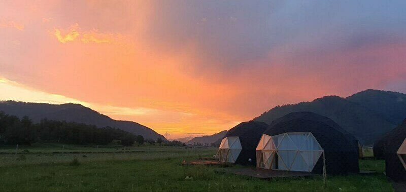 В Республике Алтай, в селе Чемал, находится замечательный глэмпинг «Место силы». Величественные леса, массивные горы, бесконечные просторы — это то, на что здесь можно любоватся бесконечно.