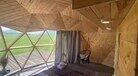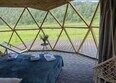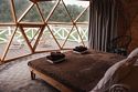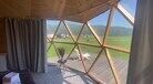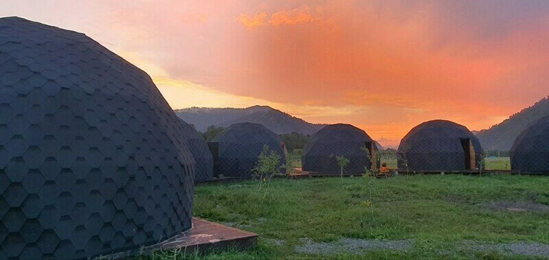 Гости глэмпинга проживают в деревянных купольных домах класса «стандарт» и «комфорт». Из окон открывается потрясающий панорамный вид на горы, а прямо перед домом расположена удобная терраса, где вы можете отдохнуть в комфортных шезлонгах.
