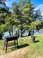 На территории есть садовая мебель и мангальная зона: мангал, печь под казан.