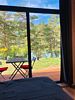 В домике: Wi-FI бесплатно, телевизор, панорамное окно с видом на реку. Катунь и горы, две кровати, постельное белье (белое), набор полотенец (большое, среднее), барный стол, барные стулья, диван, шкаф.