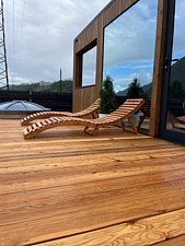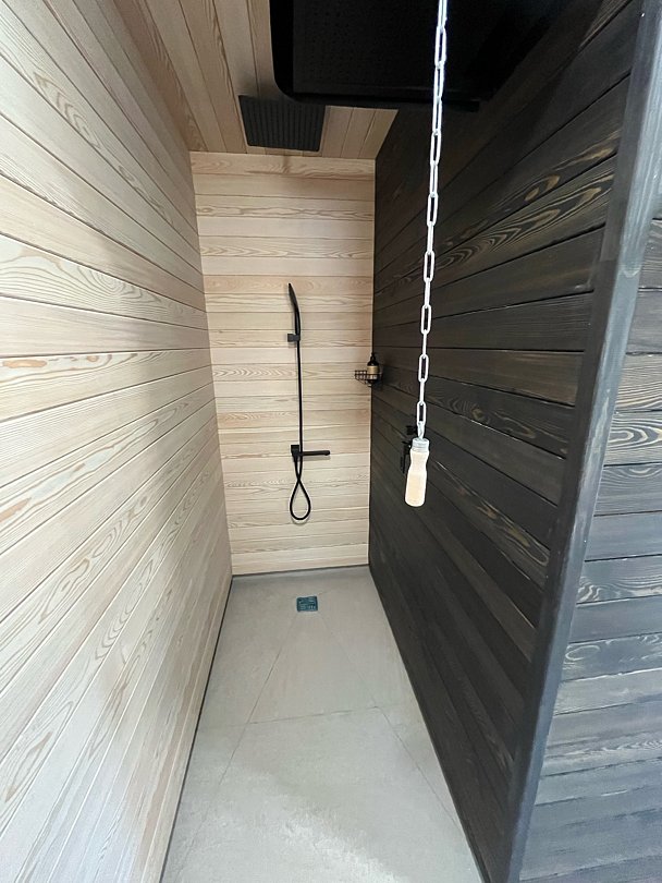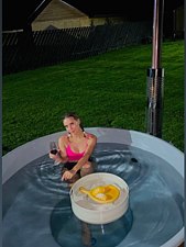 Помимо удобств домика, расслабиться вам поможет баня и чан на открытом воздухе.