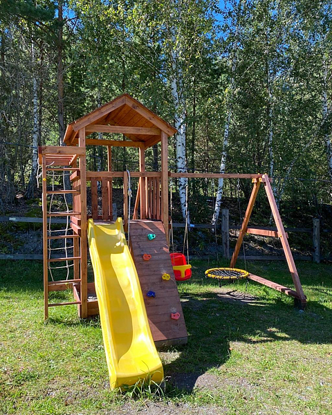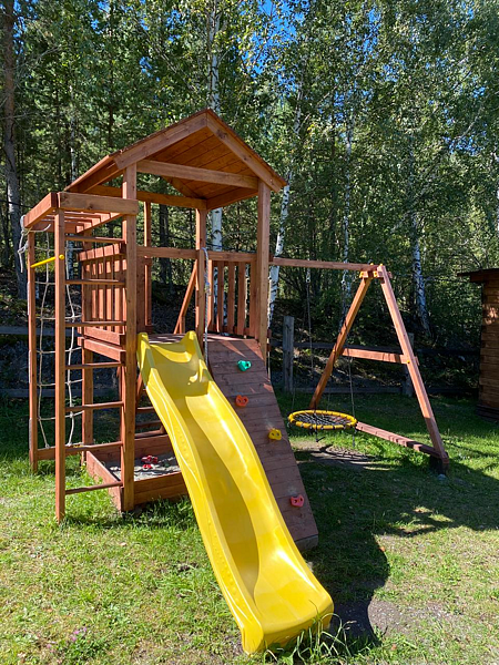 Помимо основного дома на территории есть ещё три домика, которые работают с мая по сентябрь. Также есть две беседки, бассейн (только в летнее время), баня, детская площадка и мангалы.