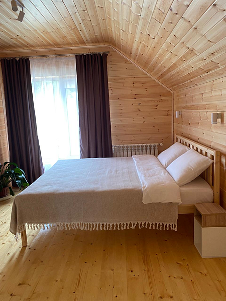 С августа 2024 года дом с сауной начал принимать гостей. В осенью и зимой он работает один на базе отдыха поэтому, если вы захотите отдохнуть в этот период на базе отдыха «Шишкин лес», то будете на территории одни.