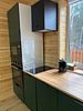 На первом этаже есть кухня-гостиная с необходимой техникой (холодильник, газовая плита, вытяжка, посудомоечная машина, микроволновая печь, духовой шкаф) и посудой (кастрюли, сковородки, кружки, стаканы, тарелки, чашки, столовые приборы и т. д.). Также есть большой телевизор со смарт-функцией. Для маленьких гостей есть стульчик для кормления.