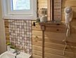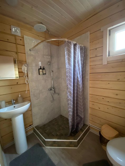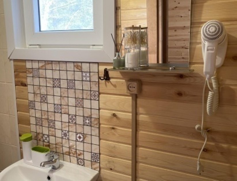 Гости могут самостоятельно растопить сауну. Шапки и простыни предоставляются. Рядом с сауной стоит обливочное ведро с холодной водой. Санузел совмещенный: душевая, унитаз, раковина, бойлер, стиральная машина, фен для волос, средства гигиены.