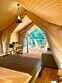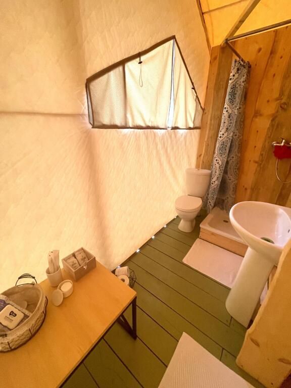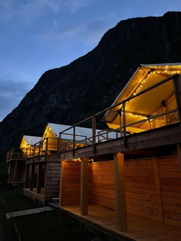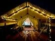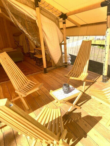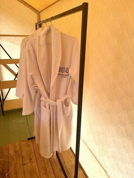 Своим гостям он предлагает прекрасный отдых в домиках-палатках, которые с уютом оборудованы спальными местами, раскладными креслами, столиками, напольными вешалками, обогревателями, Wi-Fi. Собственная ванная комната оборудована душем-поддоном, предоставляются средства личной гигиены, халаты, постельное бельё.