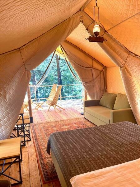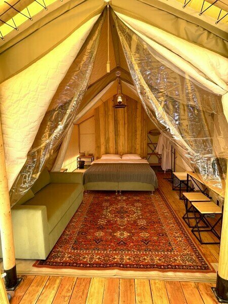 Комфортабельные палатки со всеми удобствами с большой двуспальной кроватью + большой диван