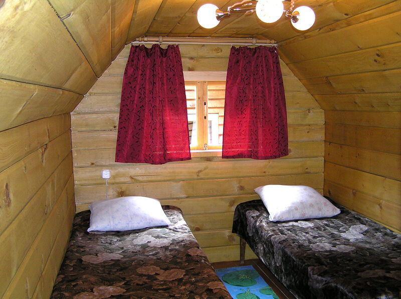 - На втором этаже — три номера, в каждом три односпальные кровати.
