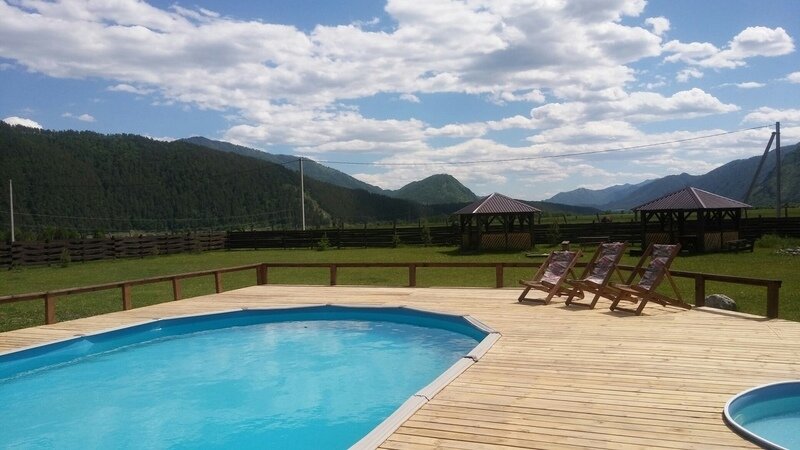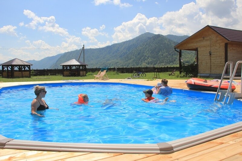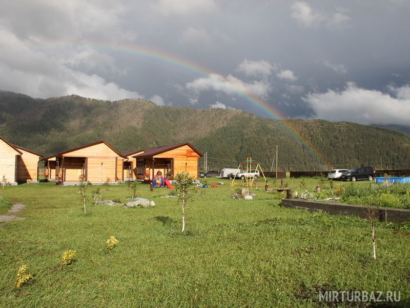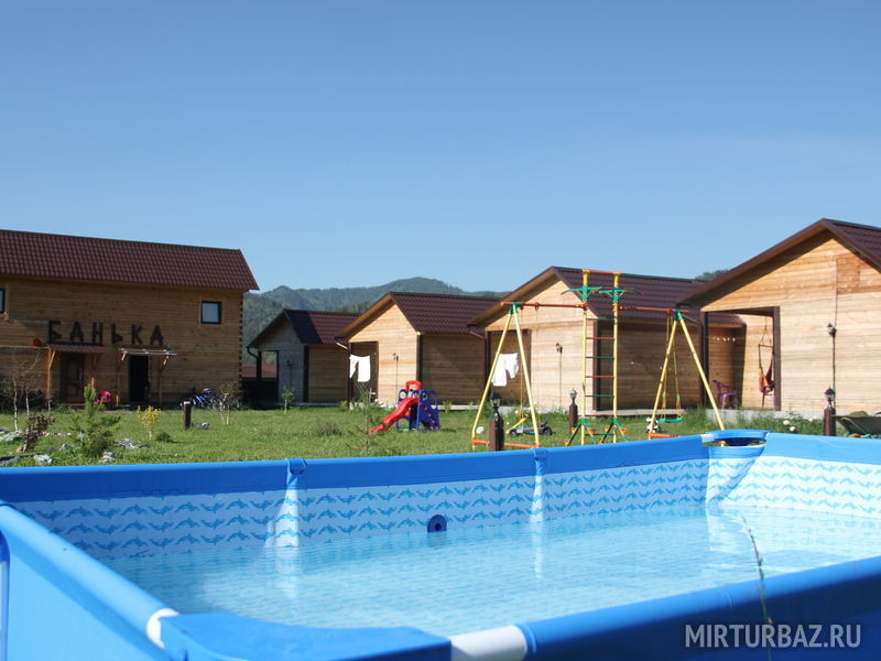 Семейный отдыхДостоинстваОтдыхали 7 дней на этой базе. Сняли домик 11.домик чистый, аккуратный. Две комнаты, душ, туалет, чайник. В одной комнате двуспальная кровать, обогреватель, кстати летом он тоже необходим, так как из за большой влажности вещи сушили только с его помощью. Туалет просторный, раковина и душ.Другая комната имеет большой раскладной диван, шкаф, стол и лавочку. На веранде очень классный и крепкий гамак, стулья, столик. Нам очень понравилось вечерами отдыхать на этой веранде. На территории два бассейна очень чистые, купались даже ночью. Имеется беседки с розетками и со светом, мангал, качели, баня, кафе, фонтанчик. Очень понравилась база. Завтраки вкусные, впрочем вся еда у них вкусная. Персонал приветливый. Предложат и договорятся об экскурсия. Также имеется общий холодильник. Рядом с базой аквапарк, "зубы дракона", конные прогулки, экскурсия на квардоциклах, пасека, где можно купить настоящий свежий мед. В кафе есть полка с книгами, именно там мы оставили подписанную книжку, а в книжке небольшой сюрприз. И вообще будет здорово если каждый что нибудь там напишет и сфотает в отзыв. Очень рекомендую именно эту базу для отдыха на Алтае. Обязательно вернёмся сами.
