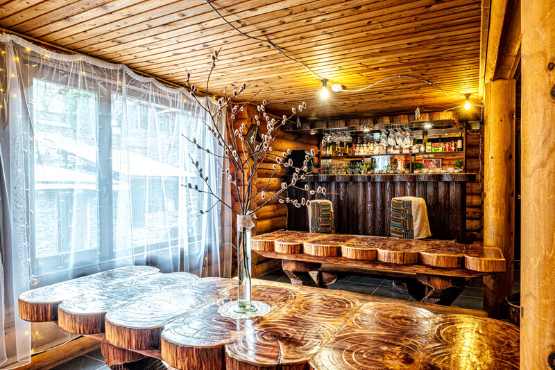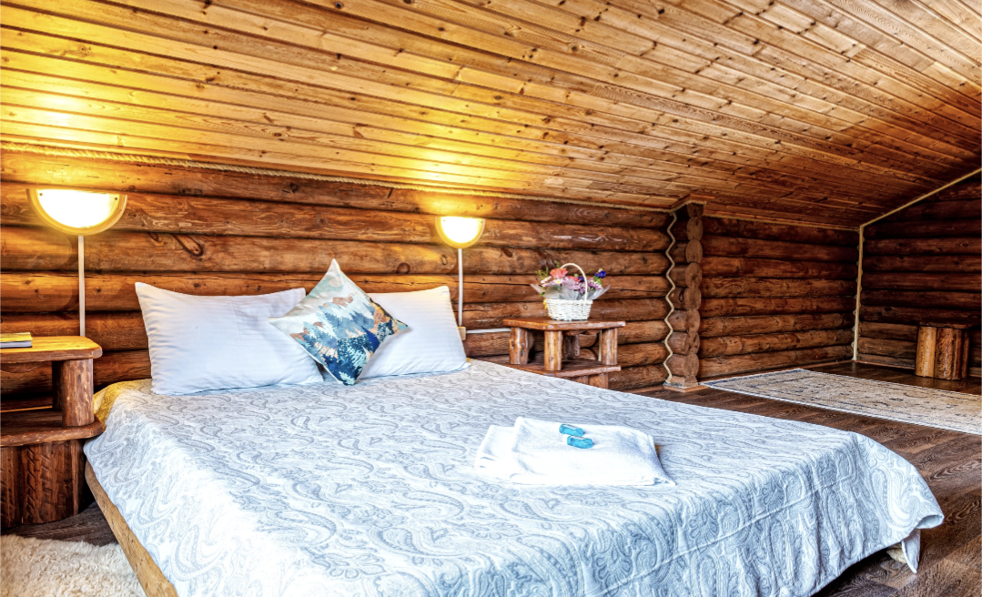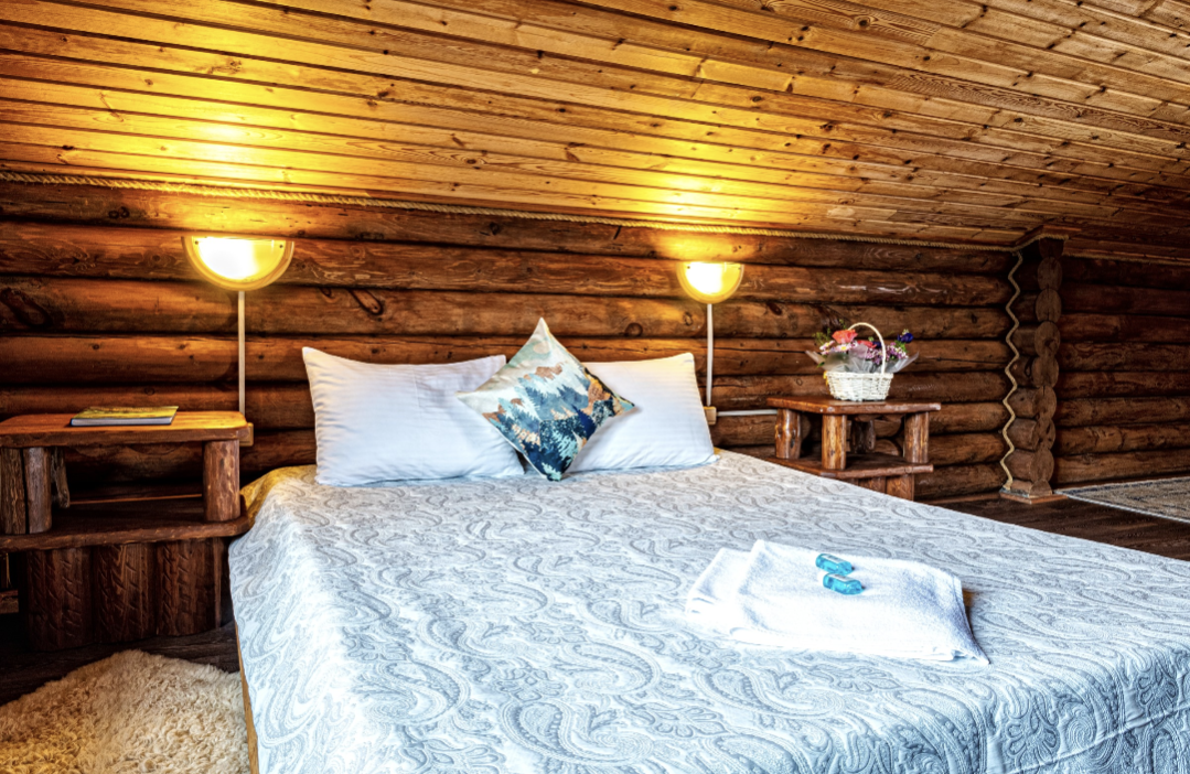 В распоряжении гостей имеются 5 уютных шале, изготовленных из высококачественного сибирского кедра, с просторными террасами. Каждый дом оборудован всем необходимым для комфортного проживания.