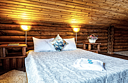 Номер на 4х гостей с большой кроватью и раскладным диваном. В номере также есть Wi-Fi, журнальный столик, кресла, шкаф, отдельный санузел с душевой кабиной. В стоимость входит постельное белье, фен. По желанию можно поставить обогреватель.