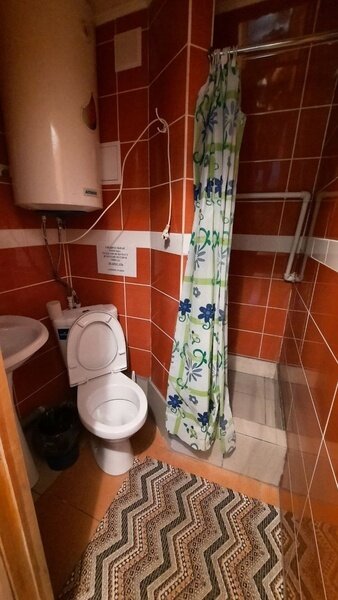 4 изолированные комнаты, в каждом номере есть туалет, в трех из них дополнительно есть душ. Просторная беседка и мангал на территории.