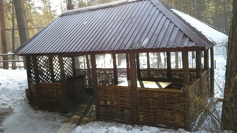 WС на 1 этаже, витая лестница на 2-ой этаж и мансарду. Около домика зона отдыха: беседка, мангал.