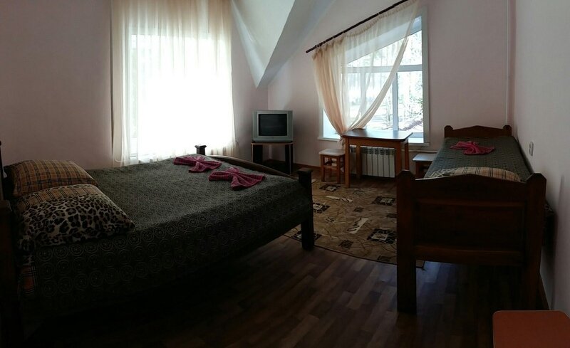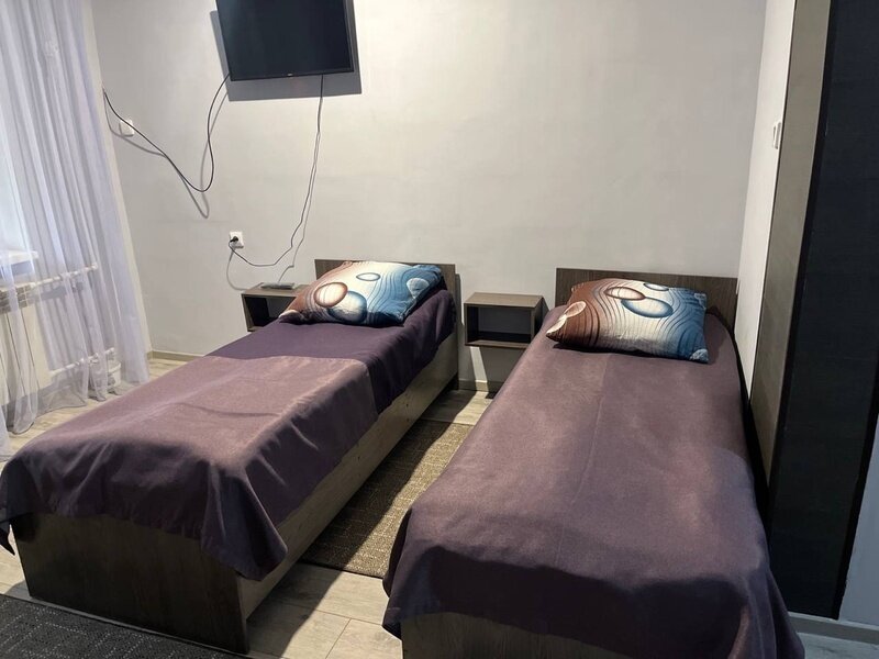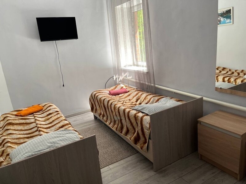Либо 2 односпальные кровати, либо 1 двуспальная. В 4 номере есть телевизор.