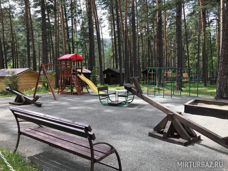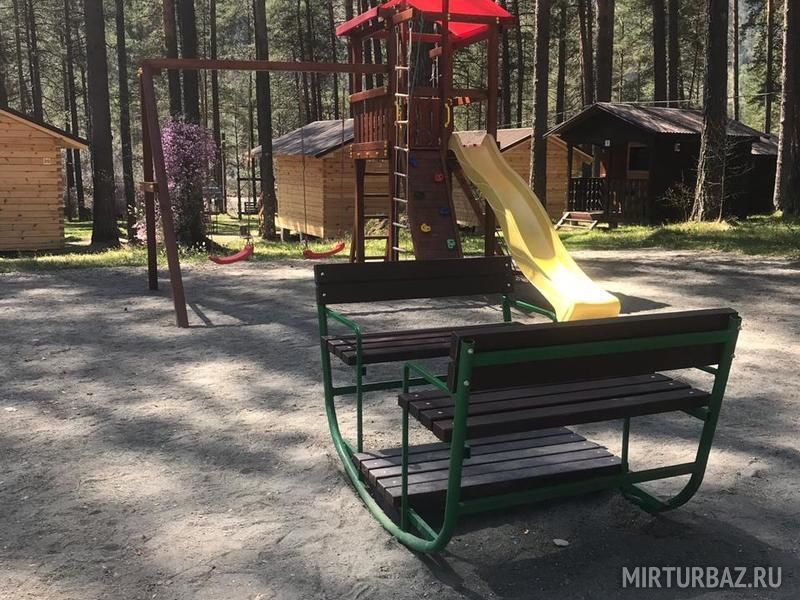 Среди многолетних сосен на просторной территории располагаются новые благоустроенные шале, аутентичные аилы и уютные бунгало. Постройки выполнены из экологически чистых материалов – сосны и лиственницы.