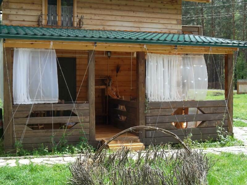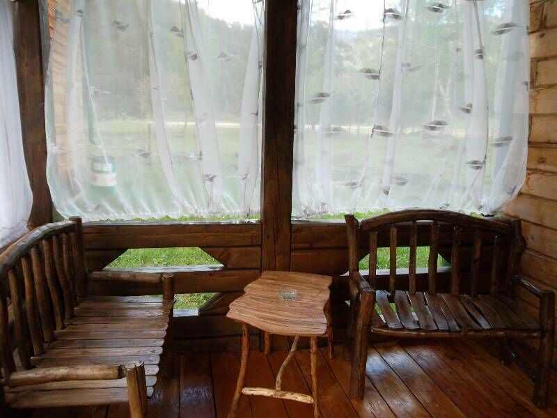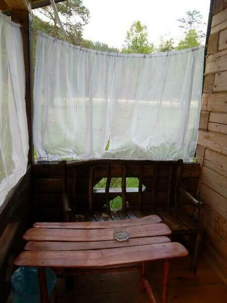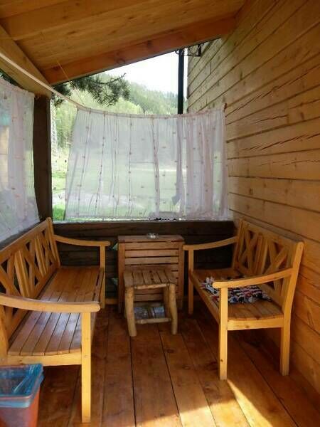 - Большая веранда со столиком и скамейками тоже ручной работы.