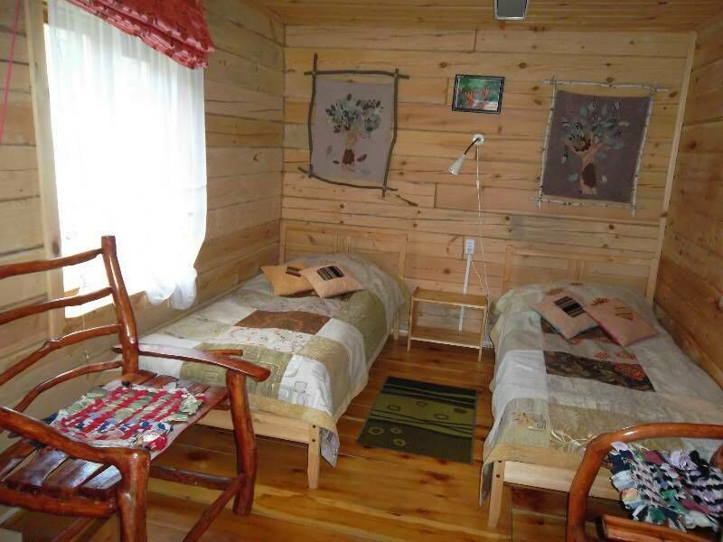 - Имеется 2 односпальные кровати и один двуспальный диван ручной работы.