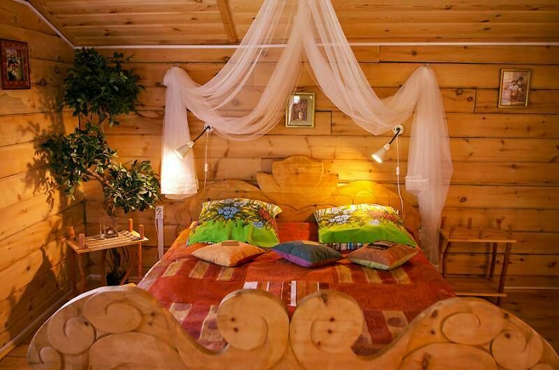 - Номер на двоих с туалетом, раковиной, кроватью ручной работы с балдахином.