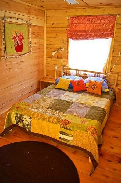 - Номер оснащен покрывалом , картинами и мебелью ручной работы, инфракрасным обогревателем.